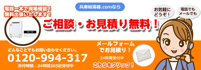【兵庫県全域】給湯器の見積もり・交換工事を無料出張!