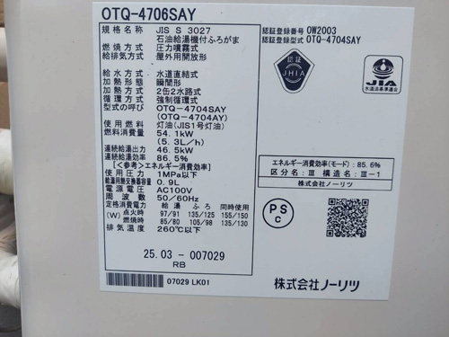 朝来市石田 ノーリツ石油給湯機付ふろがまOTQ-4706SAY 給湯器交換工事