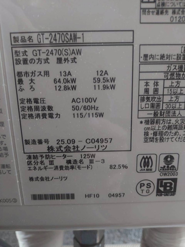 • ノーリツ ガス給湯器